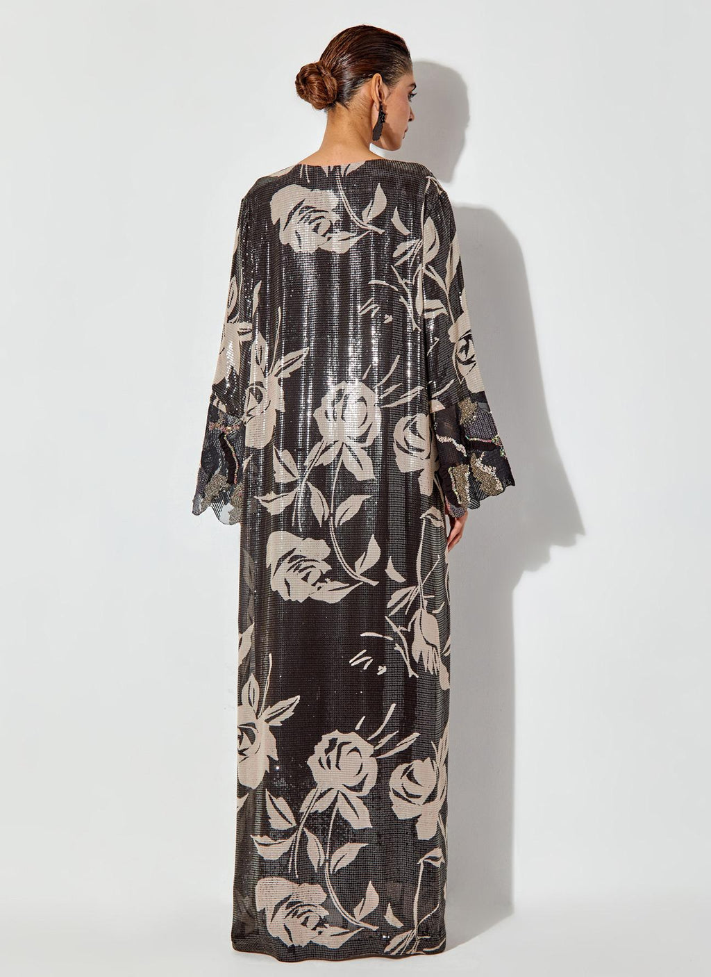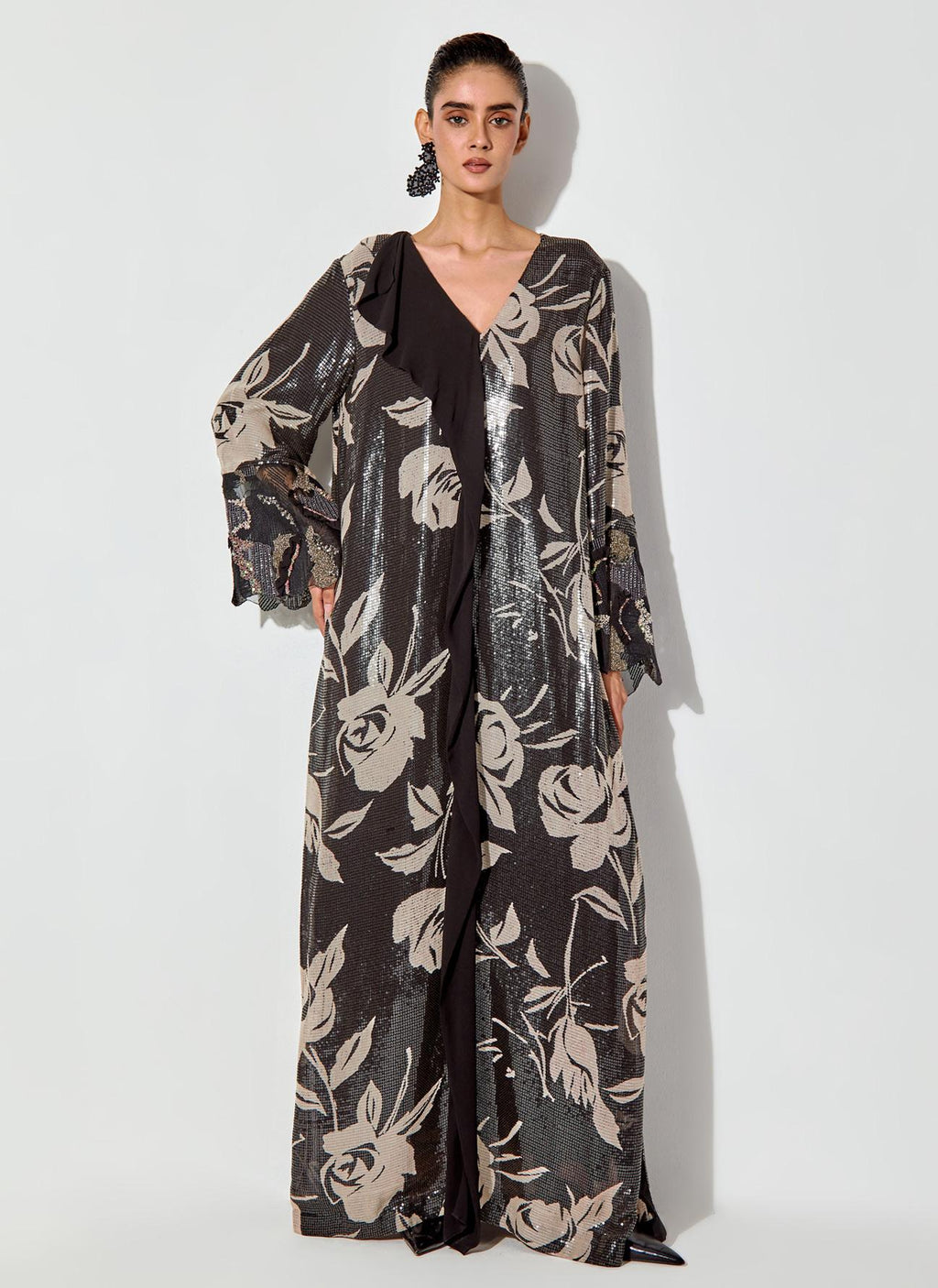 Black Sequin Floral Printed Dress