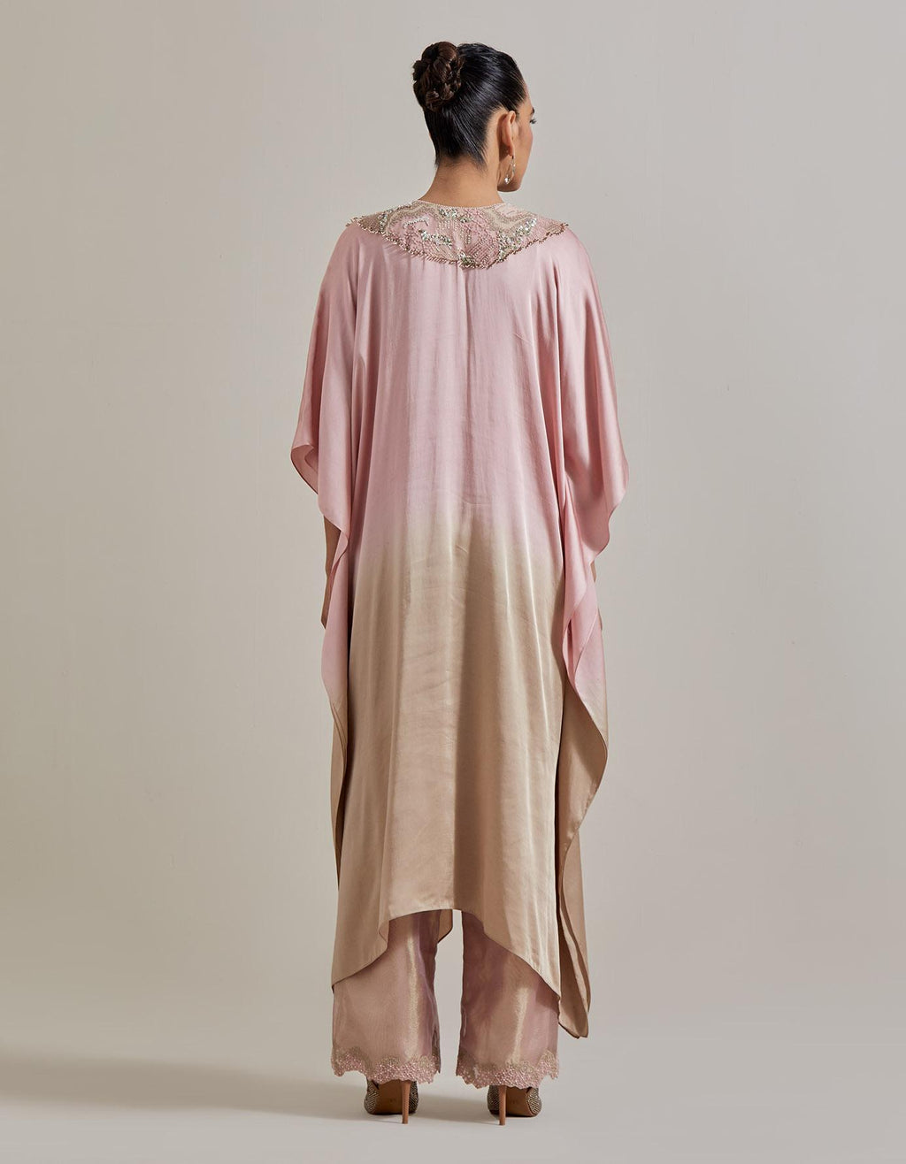 • Pink And Beige Draped Kaftan Tunic Paired With Straight Tissue Pants