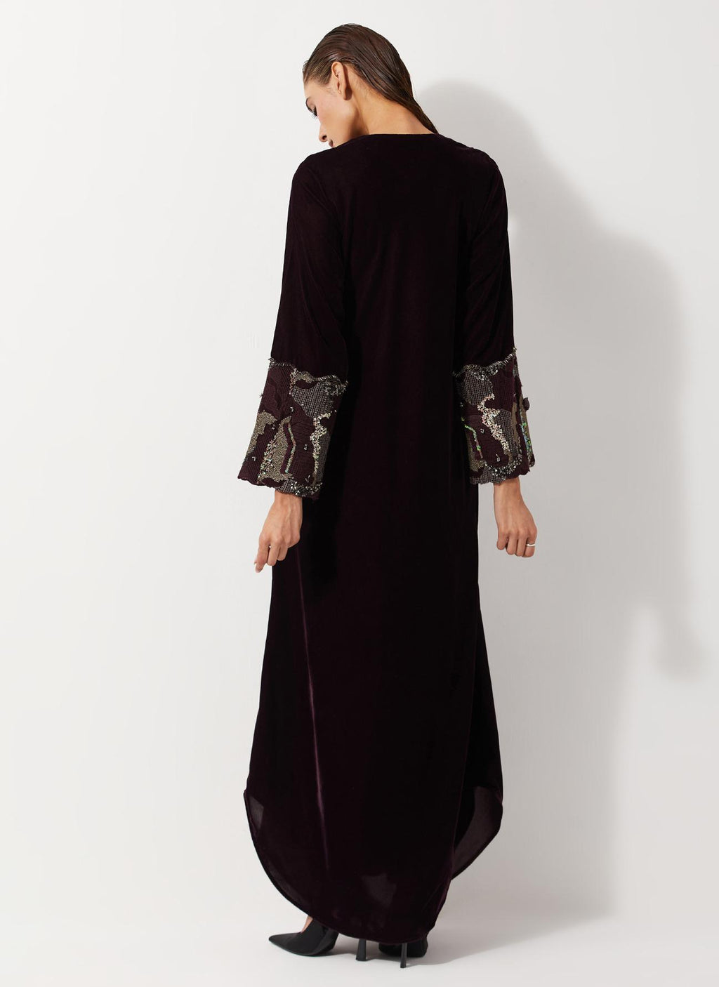 • Velvet Dress With Pleated Details And Sequin Embroidered Cuffs