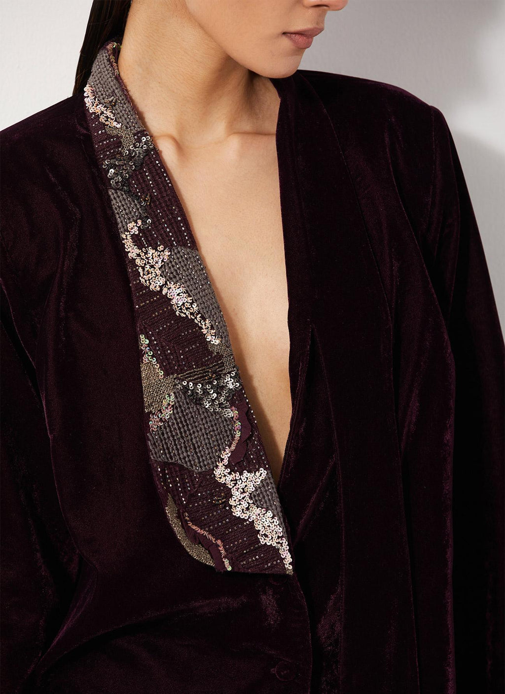 • Peplum Velvet Jacket Paired With Flared Embroidery Trouser