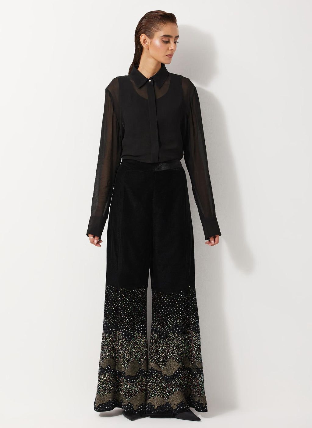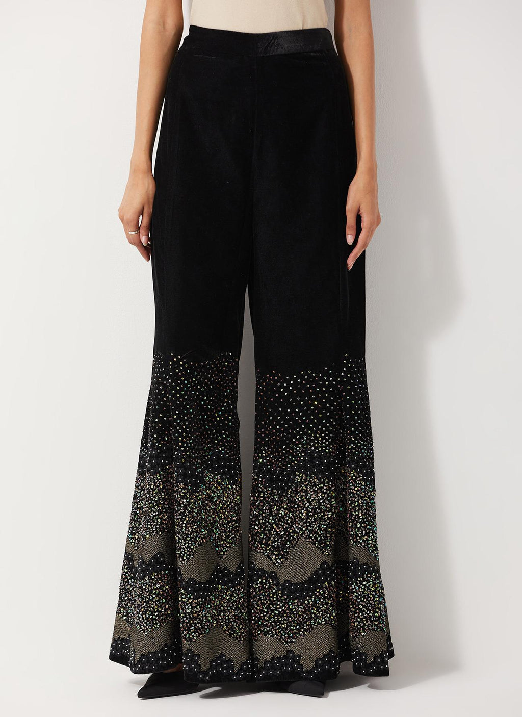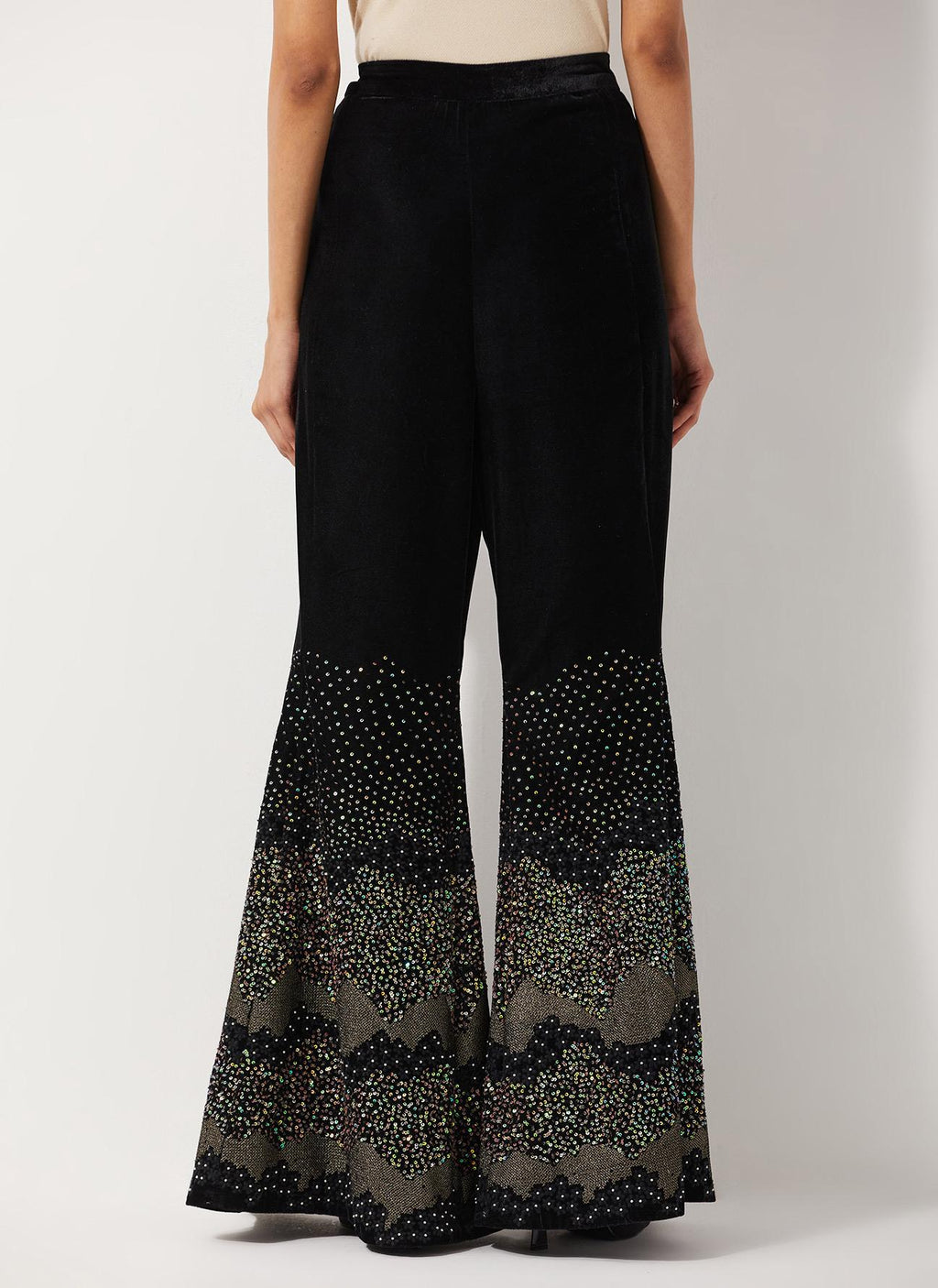 • Velvet Wide Pants With Glitzy Sequin Embroidered