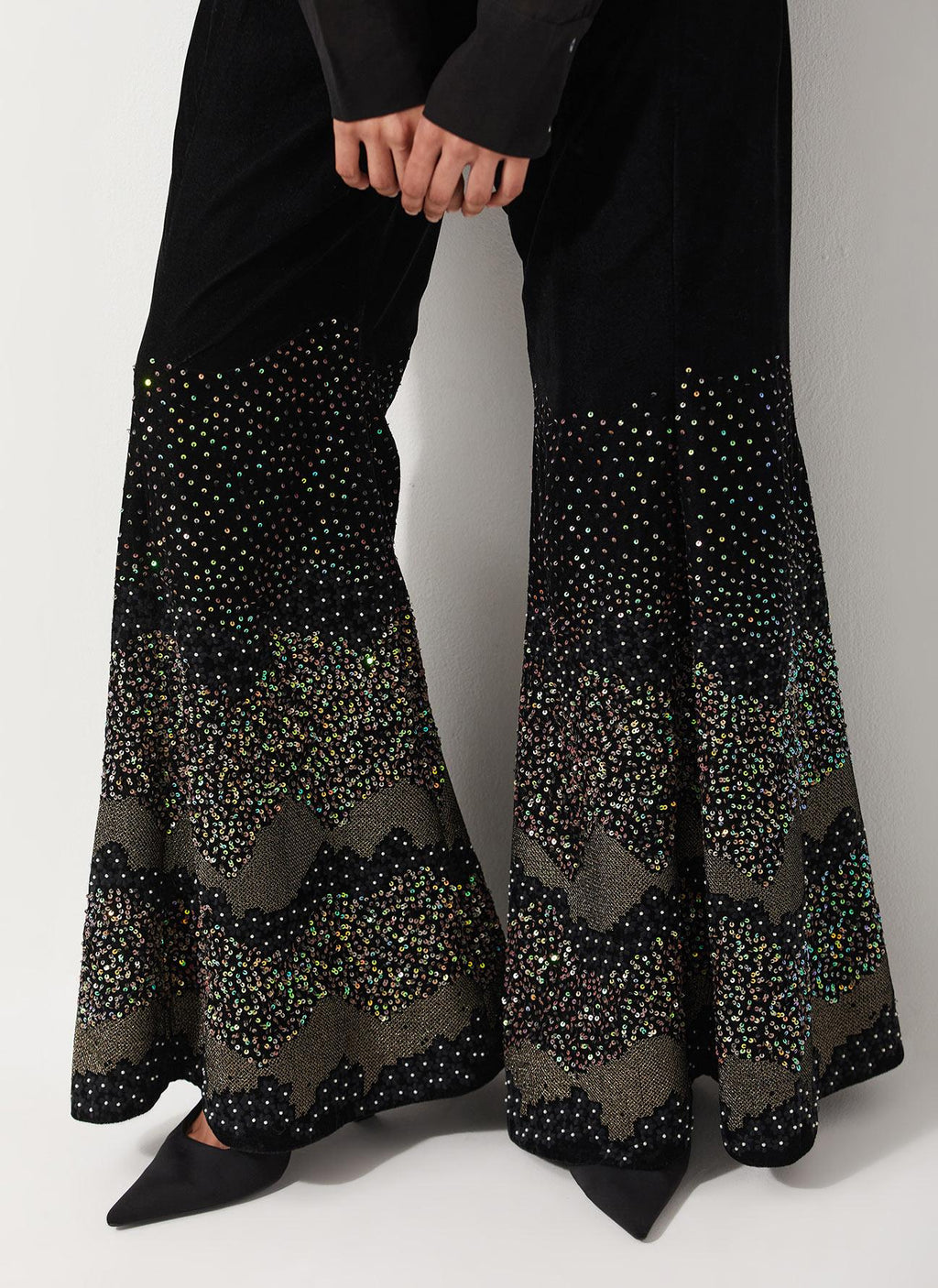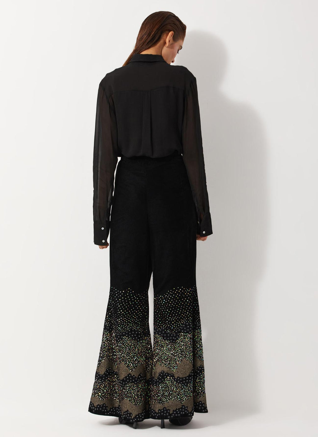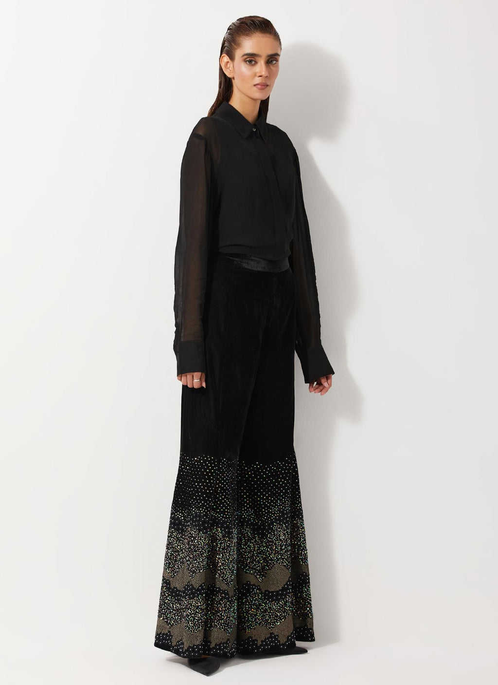 • Velvet Wide Pants With Glitzy Sequin Embroidered